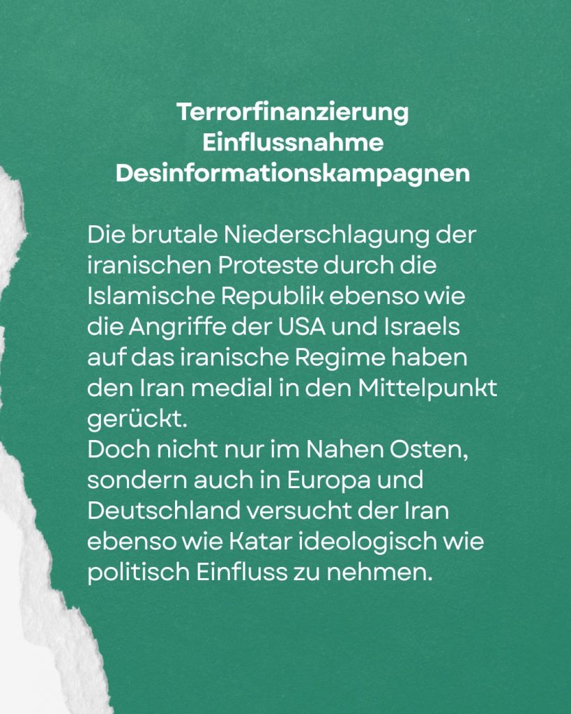 Doch nicht nur im Nahen Osten, sondern auch in Europa und Deutschland versucht der Iran ebenso wie Katar ideologisch wie politisch Einfluss zu nehmen.